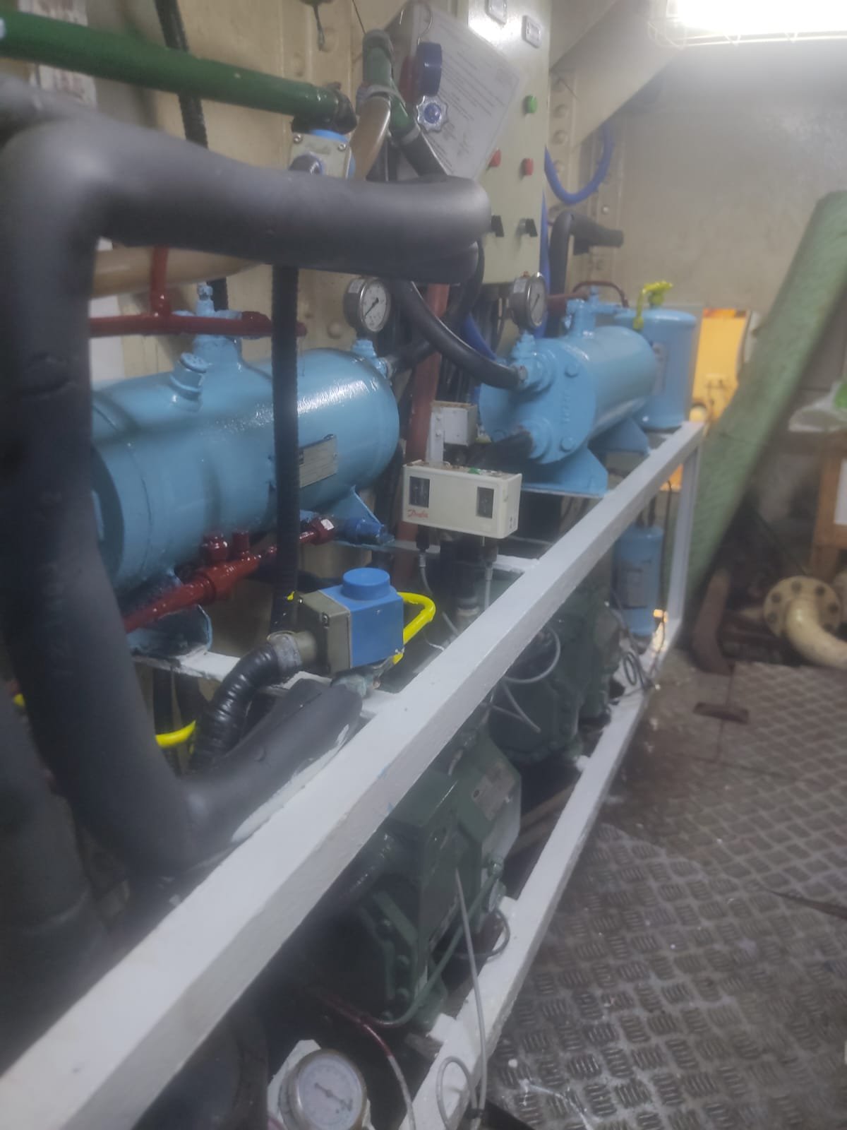 - Limpieza integral y pintura tanto de los compresores como de la infraestructura general de la sala de máquinas.